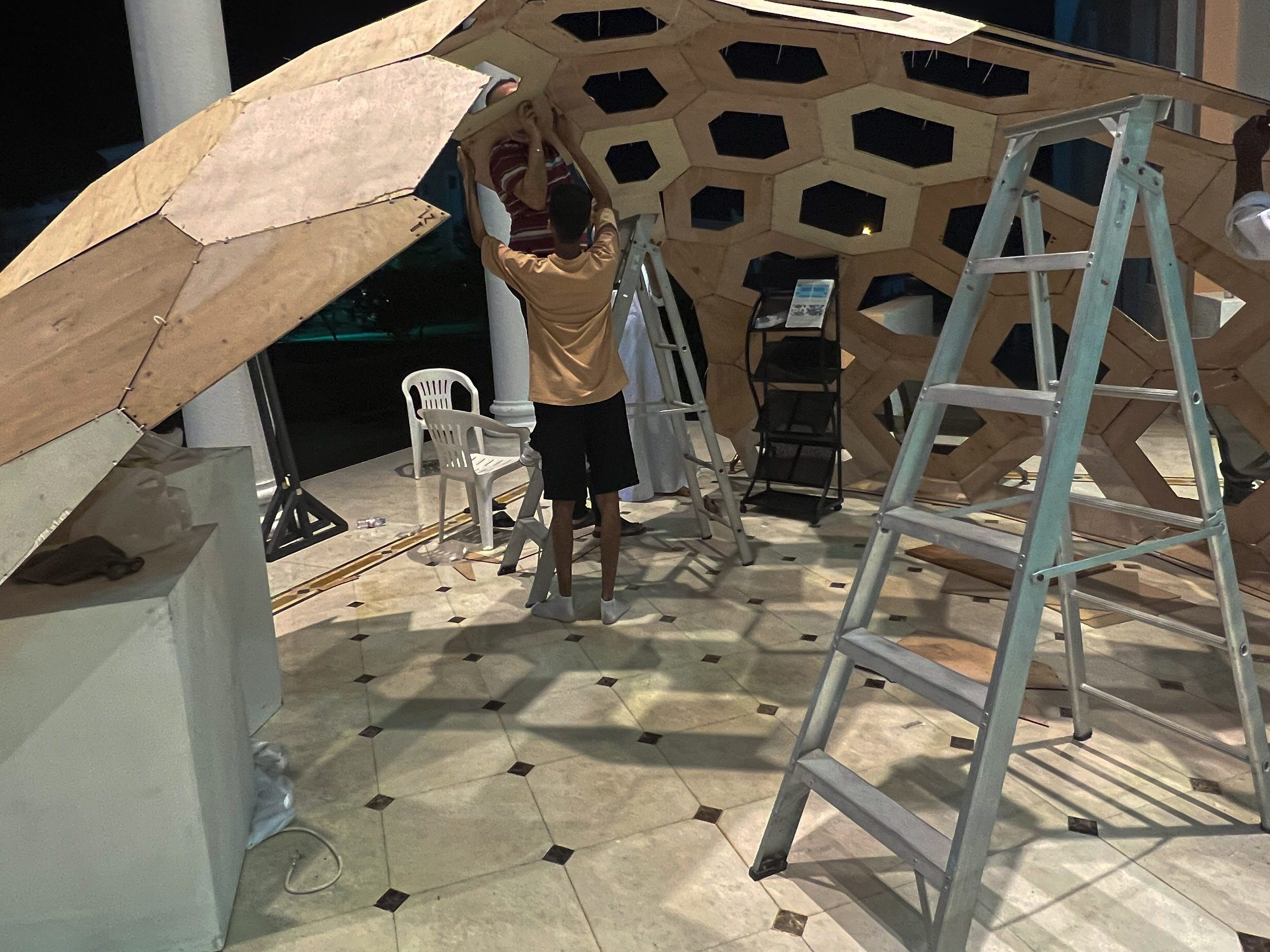 Together with year 2 students, Maryam Saeed explored a Concept-Computation-Completion Cycle, investigating smart geometry, form optimization, and creating an algorithmic sequence that would enable the pavilion to be laser cut and flat packed into shape by studio leaders, students and volunteers.