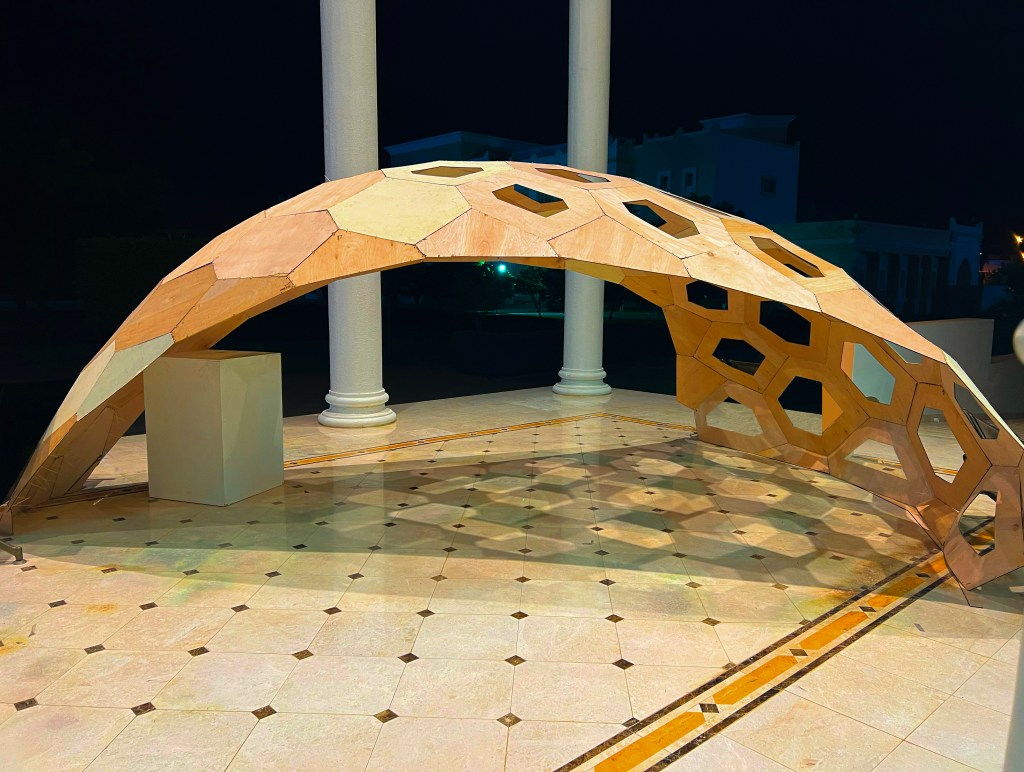 No-Le-Dge Hub is one of three student proposals to create spatial installations that enhance user experience on campus during Dhofar University’s Culture Week in Salalah, Oman. The pavilion is designed to symbolize a focal point that is perforated to pique curiosity and allow for thought exchange.