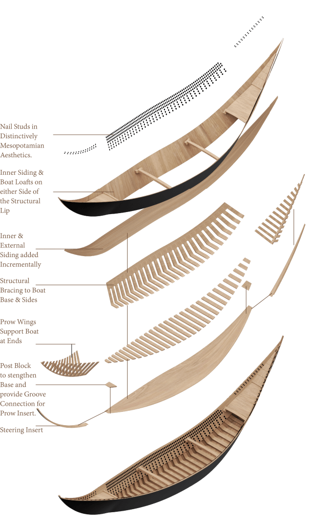 Iraqi marshes are a magical melange of land and water, the rivers float beneath basketry homes, and an entire ecosystem co-existing in a very delicate bond. In the 1980s, the craft of making Iraqi canoes became extinct. Since 2018, We began a research collaboration for Safina Projects, to digitally reconstruct the Meshouf.