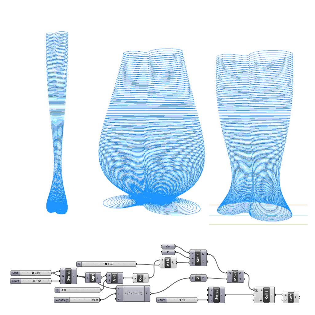 Glaci is created with algorithmic methods, based on cosine and parabolic curve equations. The entire collection is designed by alterations of a single mathematical equation. The script and form are created by Siryali using grasshopper.
