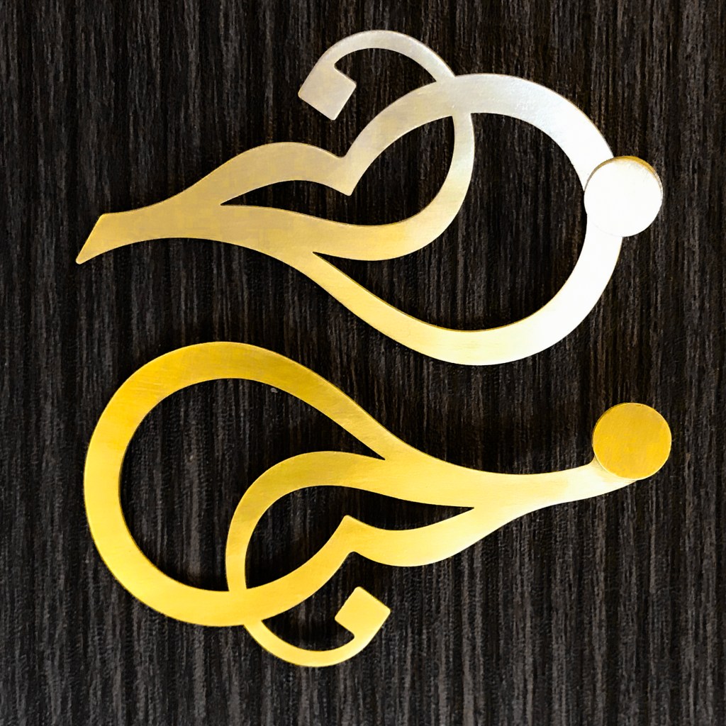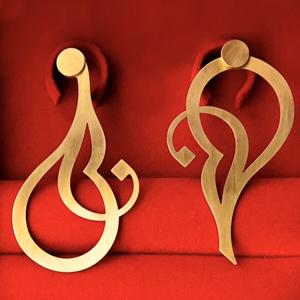 In the love of Romance, of the mastery of Arabic Calligraphy, and our particular admiration of jewelry, we converted Ebrahim’ Jafar’s Masterpice into a Masterpiece of their own : A pair of gold, asymmetrical earrings.