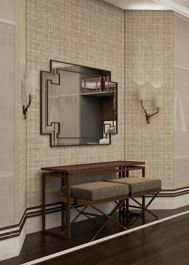 Between a spa and a bungalow, Suite 105 is designed to continuously engage and delight the senses. It boasts solid hardwood floors, textured stones, silky marbles, dual rain showers and heated stones in-set into the flooring. Furniture Pieces are an ode to endangered artisanal crafts from basketry furniture to ancient treasure chests.