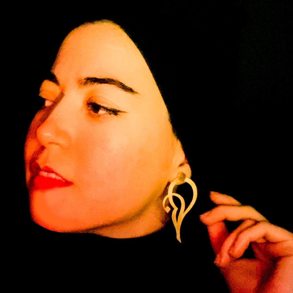 Jewelry Girl With a Gold Earring. Siryali Studios – 2021 Belemi. Mesopotamian Earrings by Siryali Studios