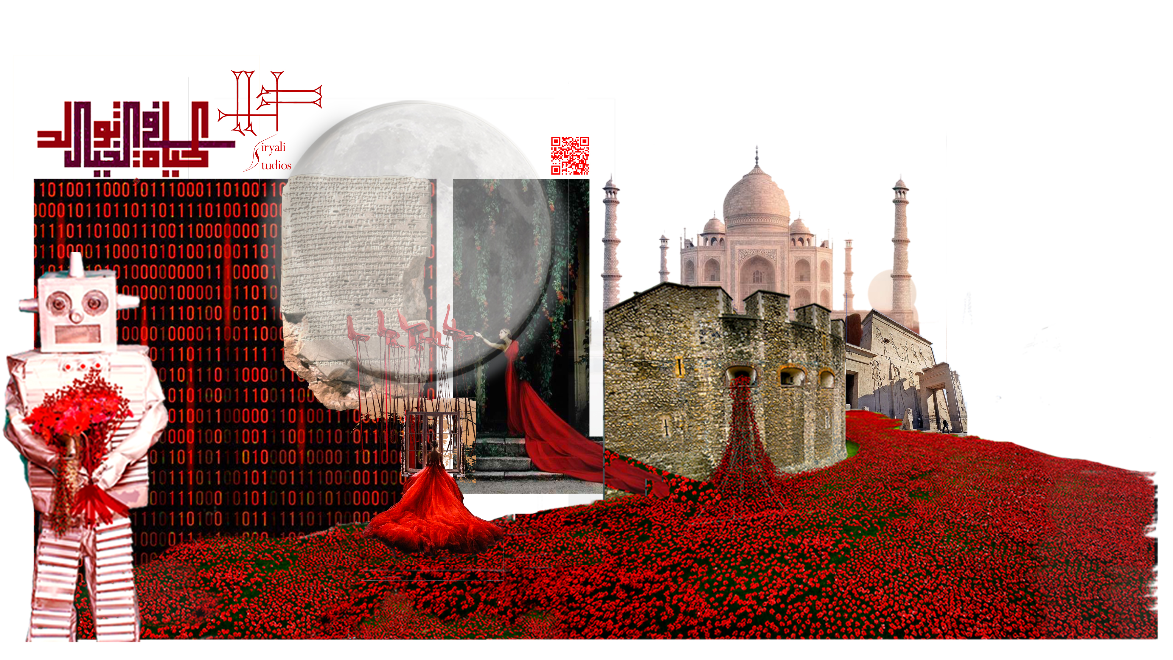 Its walls are embossed with Cuneiform and Kufic texts: the first human written script, and the first interplay between art and calligraphy in the Arab world, both of which began in Iraq. The robots engage with binary texts and laser codes, but misinterpret the last remaining human for a poppy. The geometry of the mausoleum is inspired by my grandmother’s home in Baghdad, where I first encountered death.